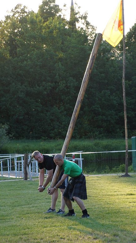 Vor allem die neue Disziplin „Nessie Rafting“, bei der pro Team je vier Teilnehmer auf einem Floß eine bestimmte Distanz auf einem Teich auf Zeit zurücklegen mussten, sowie das Tauziehen und das klassische „Tossing the Caber“, der schottische Baumstammüberschlag, rissen das Publikum mit. Zwei Damen- und 14 Herrenteams stellten sich all diesen Herausforderungen und meisterten sie bravourös.